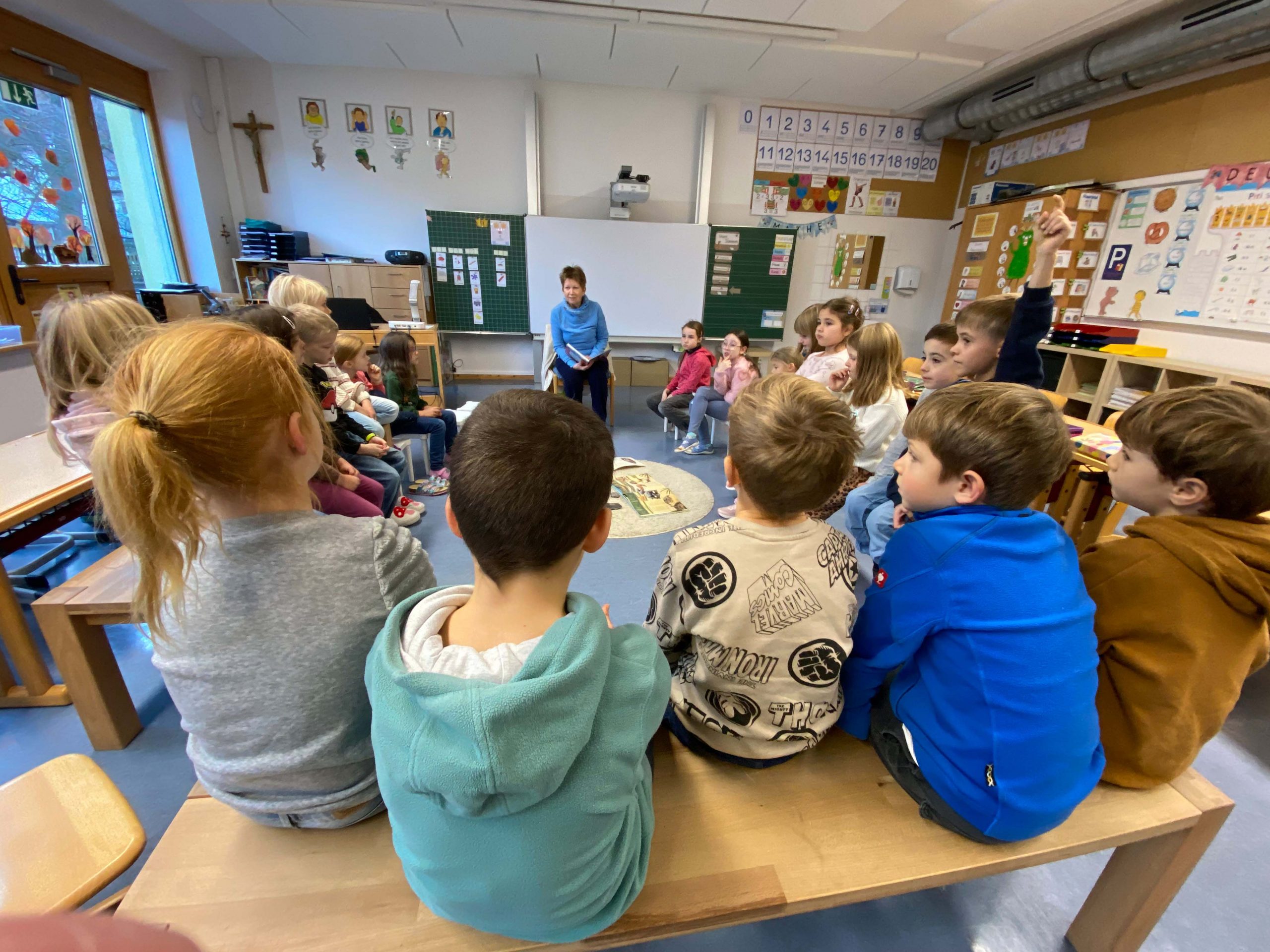 In der Klasse 3/4a las Herr Riegel selbst geschriebene Gedichte vor.