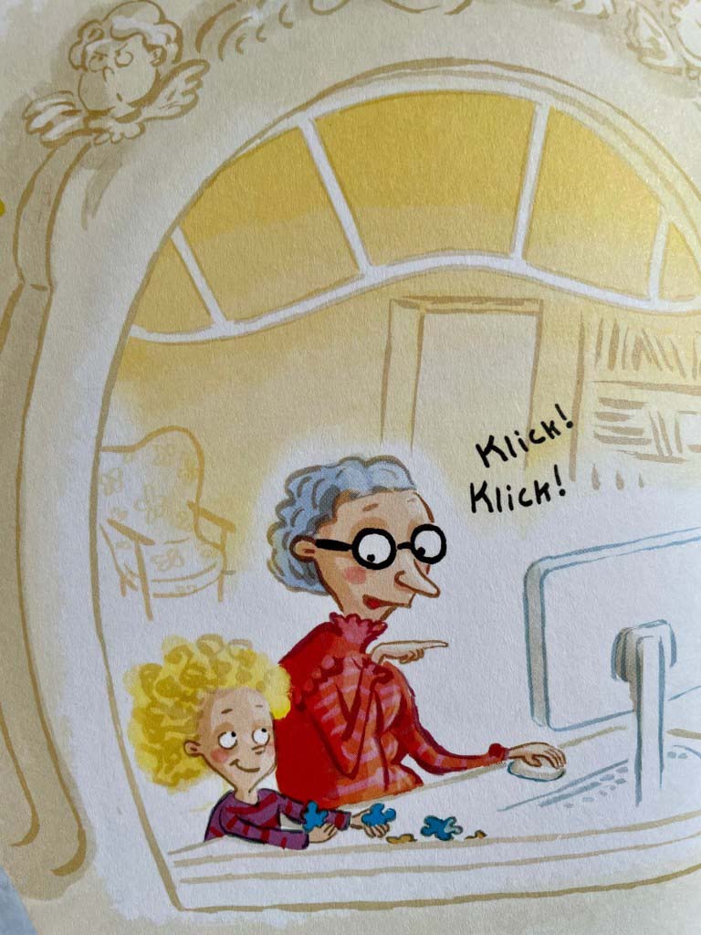 Frau Karin Gerhard, die Ehefrau unseres Bürgermeisters, begeisterte die Klasse 3/4b mit dem Buch „Der Tag, an dem meine Oma das Internett kaputt gemacht hat“ von Marc-Uwe Kling.